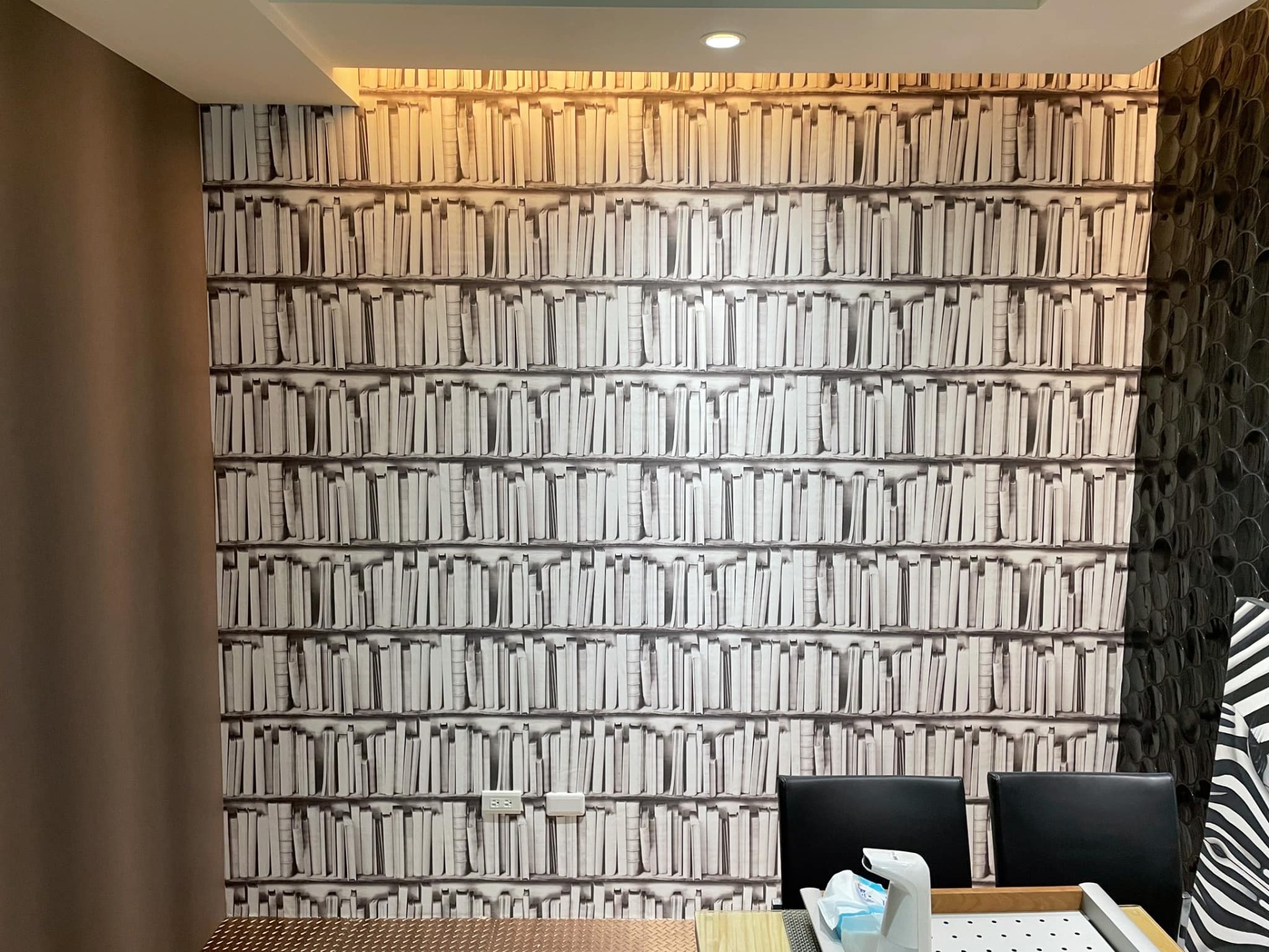 採用書櫃風的壁紙讓房間看起來有書香氣息